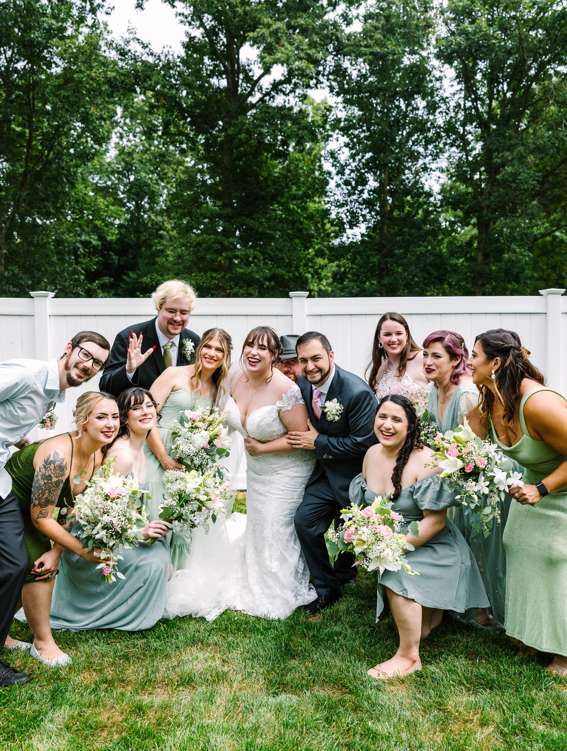 Taking place in their very own Long Island backyard, J + K’s wedding was intimate, sweet, and tons of fun! The couple incorporated their favorite characters from Line Friends – Brown the Bear and Cony the Bunny – along with other nods to their hobbies and interests throughout their day. They even After their poolside ceremony, guests were treated to dinner with several food trucks and snacks. Later in the night, K changed into a comfier green dress so she could dance the night away. Bubble guns were a popular addition to the day, entertaining both the kids and adults in attendance.